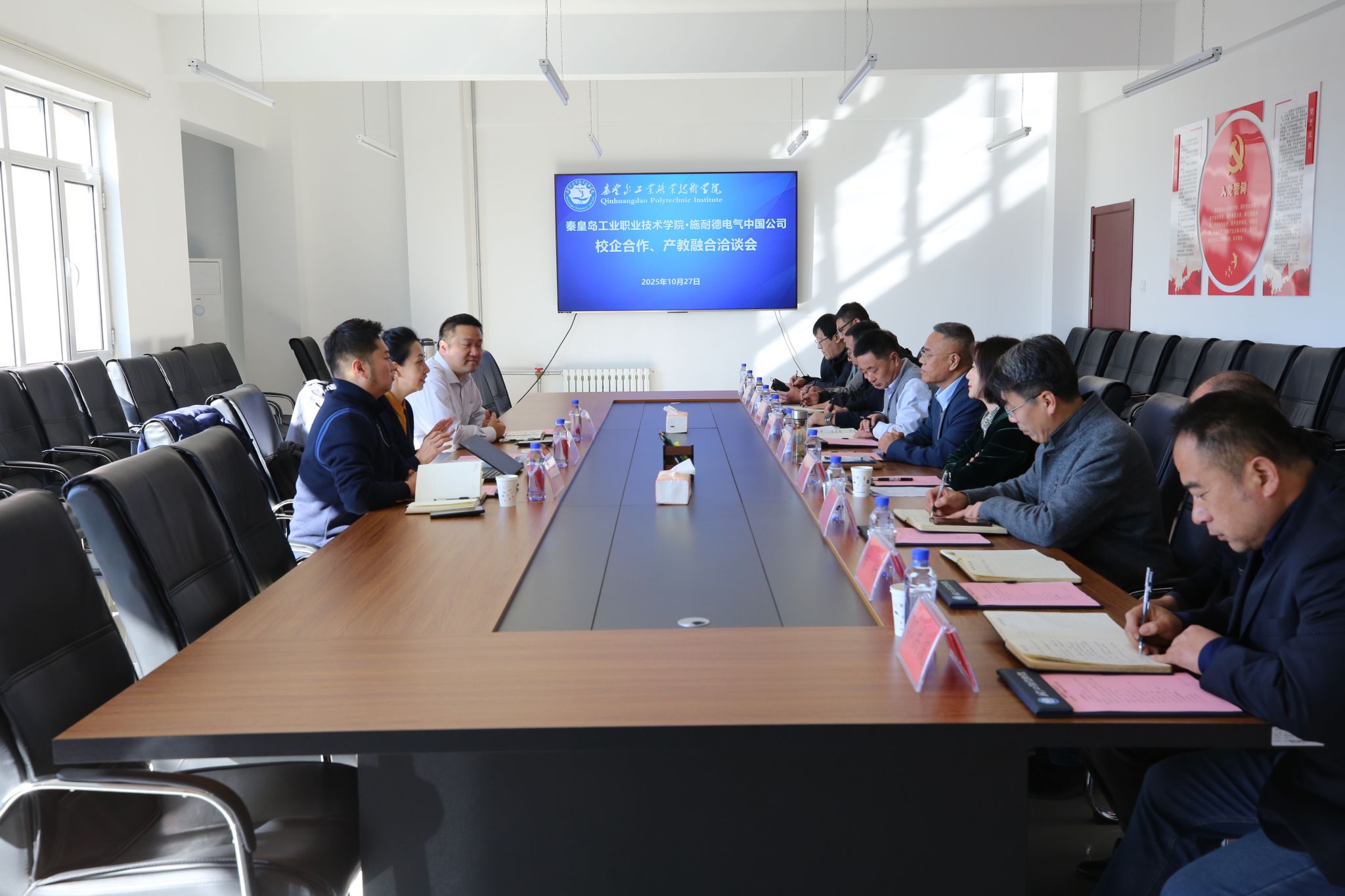 10月27日上午,施耐德电气(中国)全球供应链低压事业部人力资源部经理霍秀玲、施耐德电气(中国)有限公司招聘经理阮一峰、施耐德(北京)低压电器有限公司校企合作负责人张翀一行3人到访我院,双方围绕“订单班”培养、“厂中校”现场教学、企业专家进校园等核心事宜开展深度交流研讨。