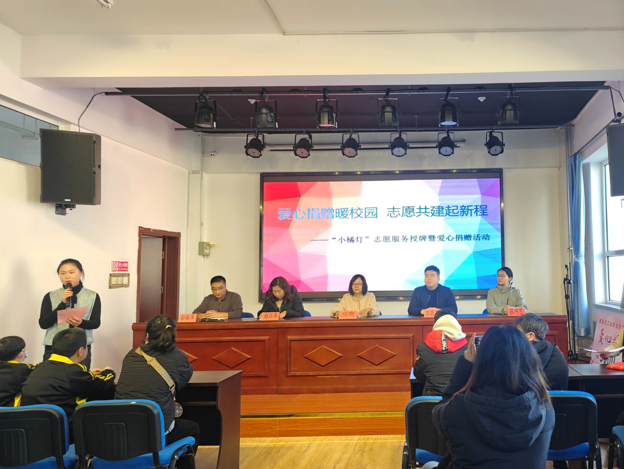 12月5日上午,秦皇岛工业职业技术学院团委老师和学生会技能实践部学生代表到秦皇岛市抚宁区特殊教育学校开展“小橘灯”志愿服务基地挂牌暨爱心捐赠活动。