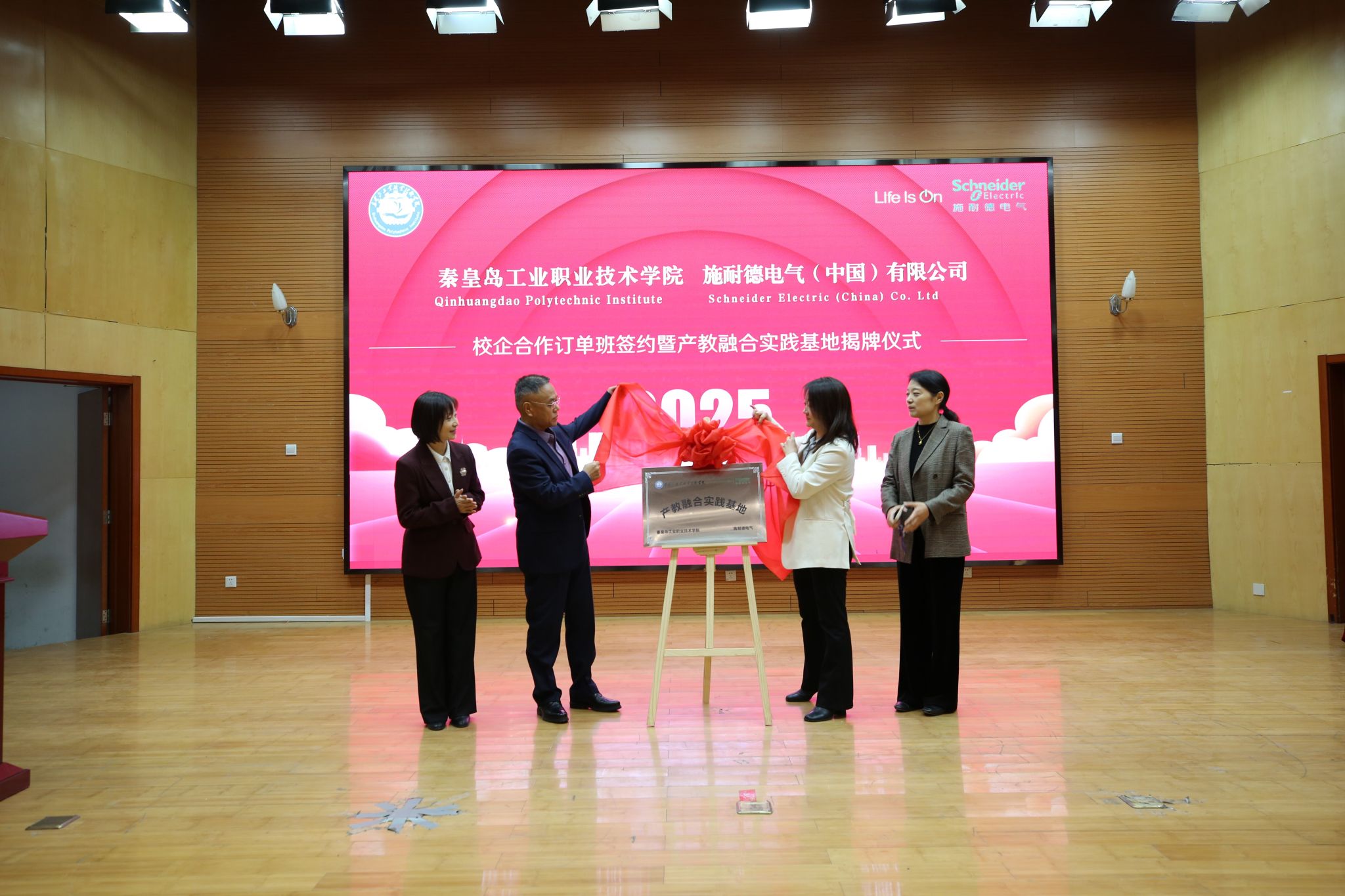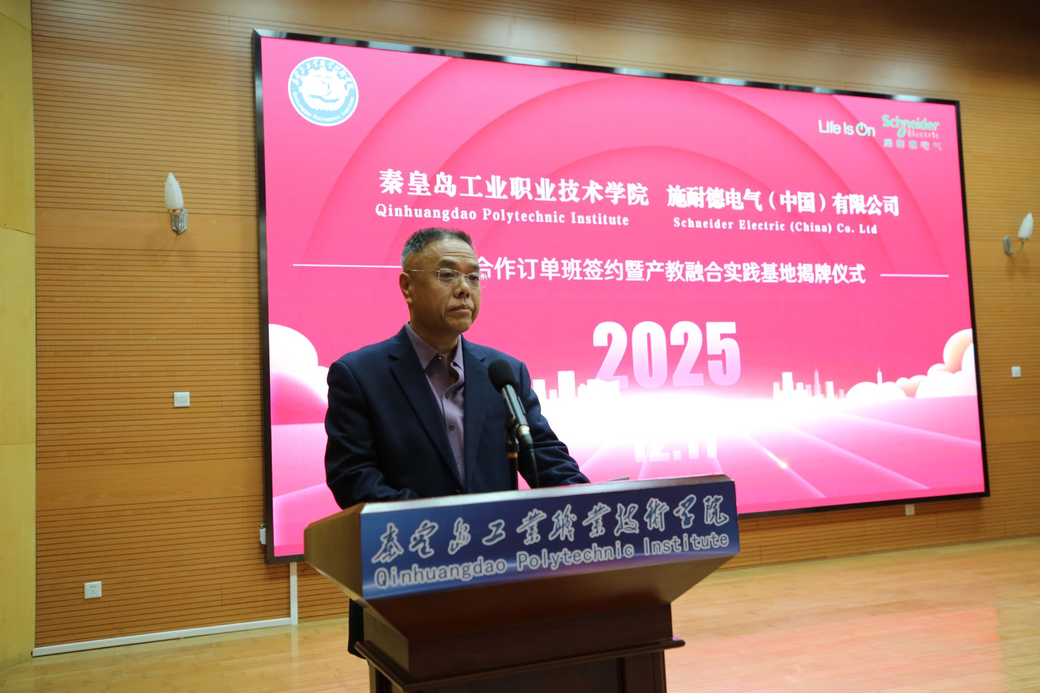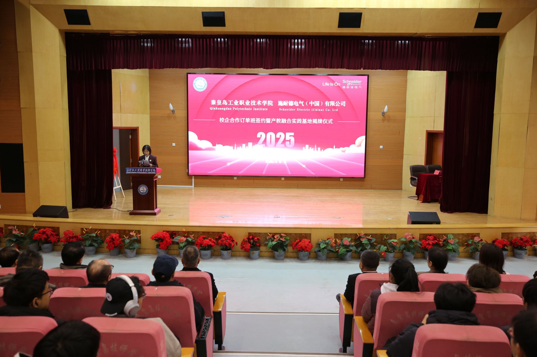 12月11日上午,学院与施耐德电气(中国)有限公司校企合作订单班签约暨揭牌仪式在学院报告厅举行。仪式由党委副书记徐明主持。
