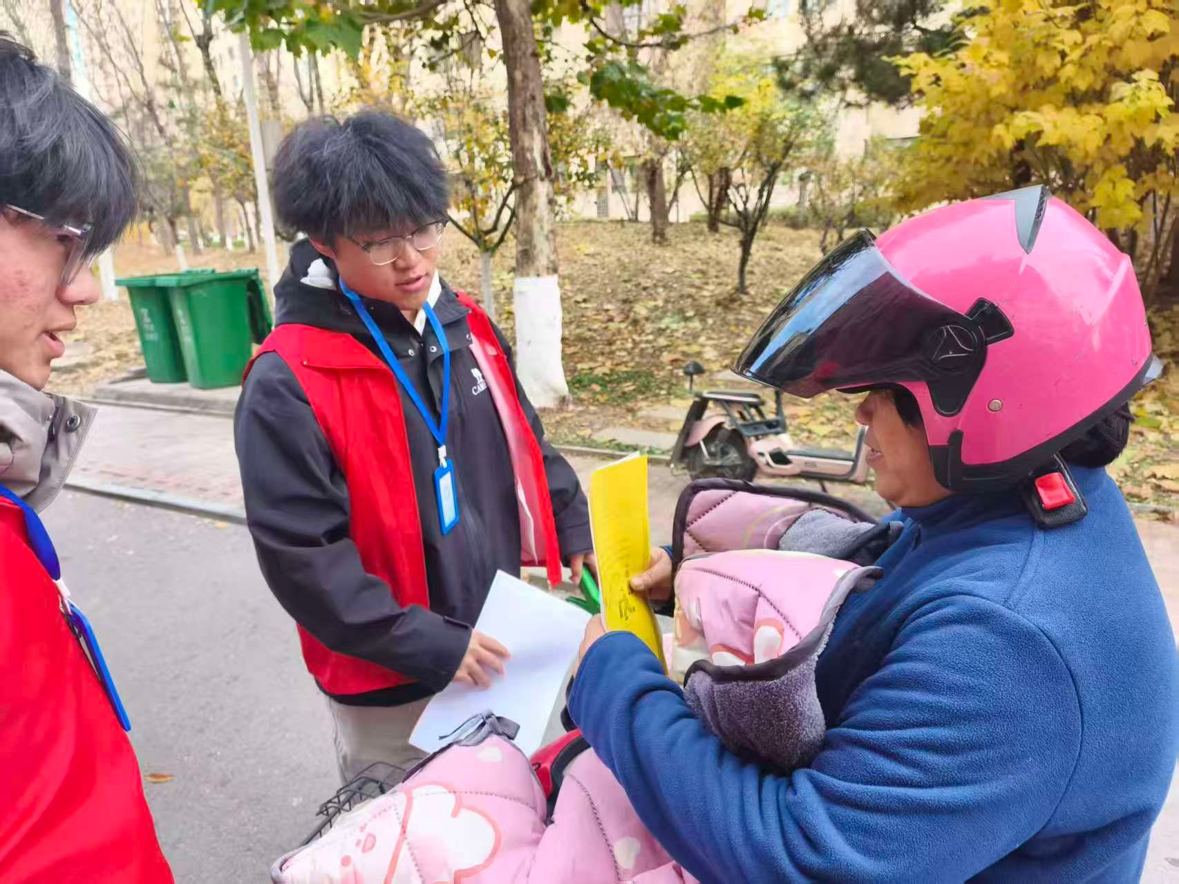11月16日上午9时,志愿者们走进盛秦北苑社区中心广场,正式拉开消防安全宣传序幕。机械工程系团总支书记田喆在启动仪式上强调:“递出的每一张宣传单页,都在为生命通道扫清障碍;清理的每一处楼道杂物,都是为社区安全添砖加瓦。”