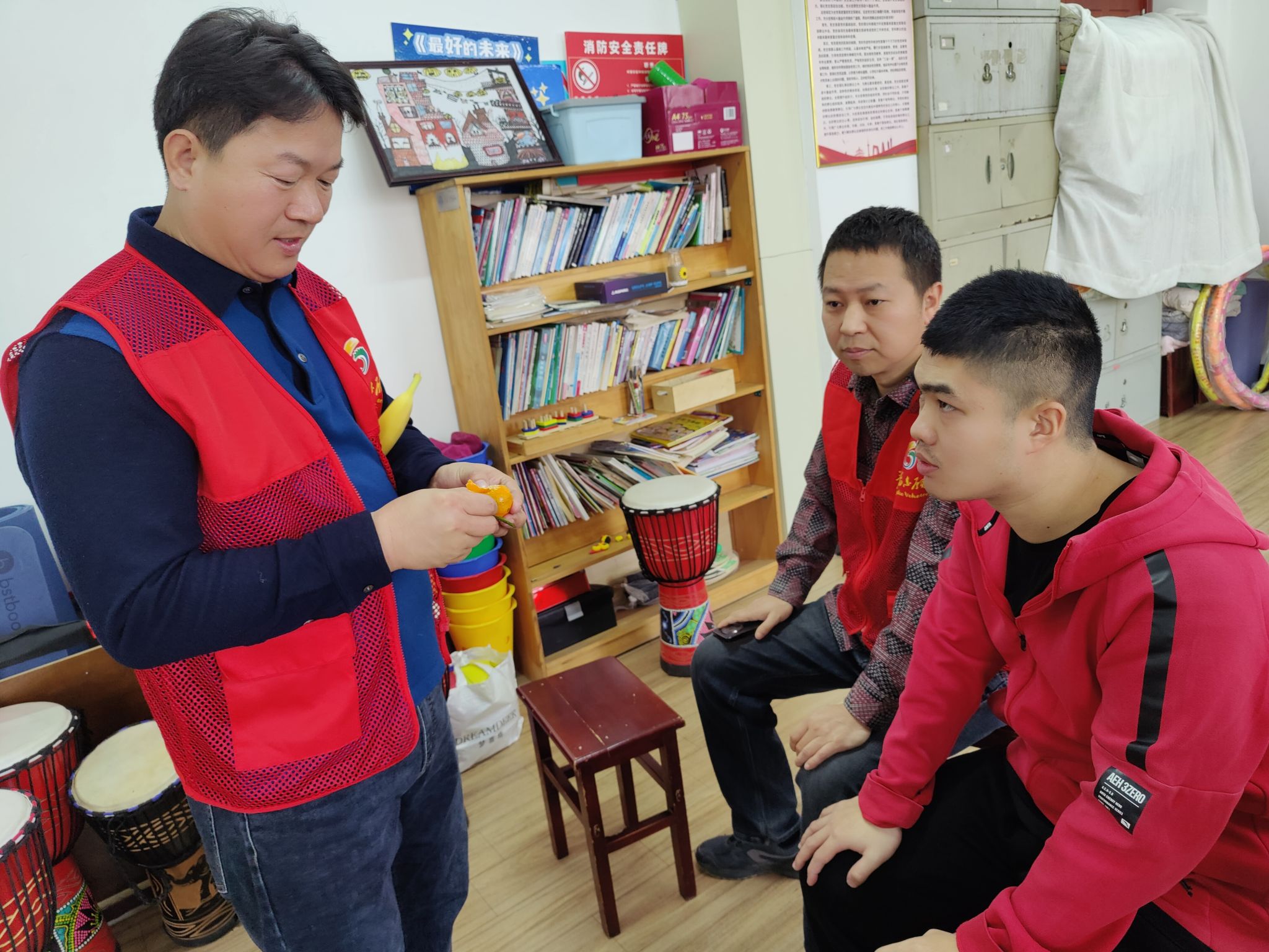 活动中,党员志愿者们为孩子们送上了精心准备的网球、画具、作业本等学习用具以及各类生活用品,并贴心地为孩子们分发了新鲜水果。随后,志愿者与孩子们一起参与了奥夫音乐互动课程,通过节奏与旋律的交流,搭建起情感沟通的桥梁。志愿者们一对一陪伴在孩子身边,耐心引导、轻声鼓励,课堂里充满了欢声笑语。