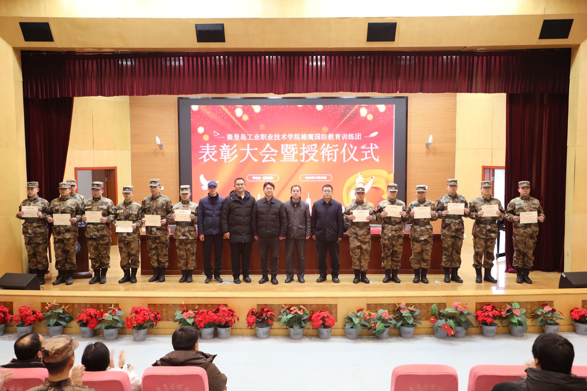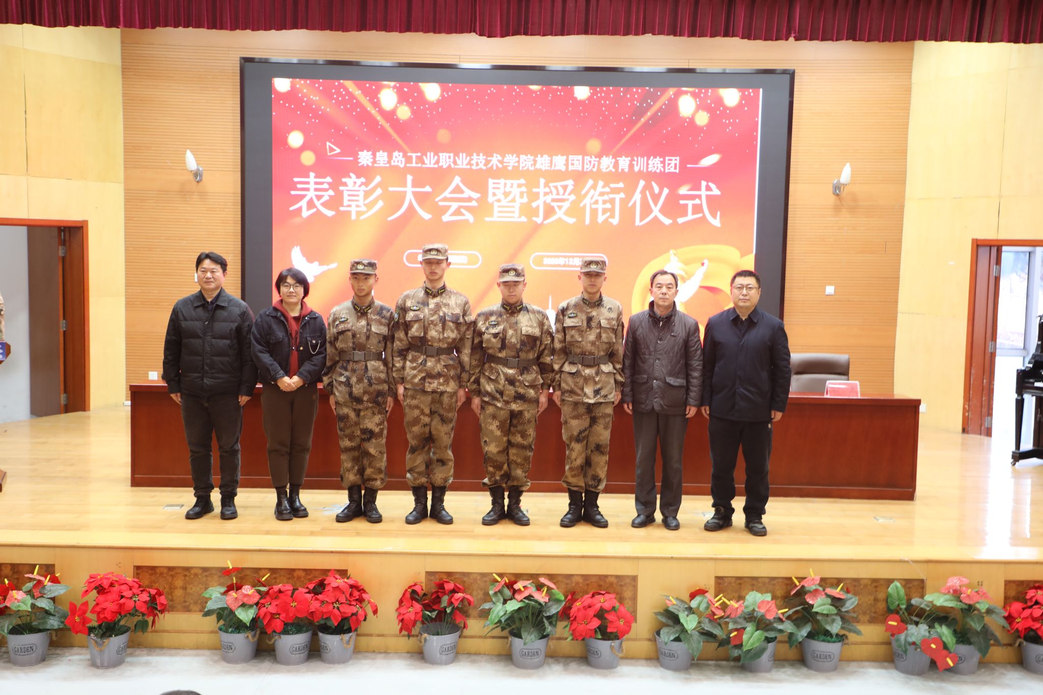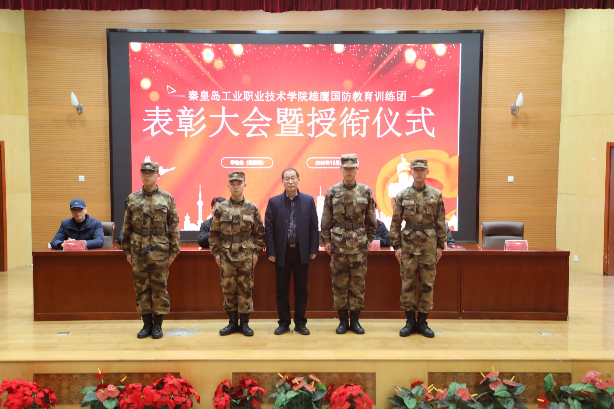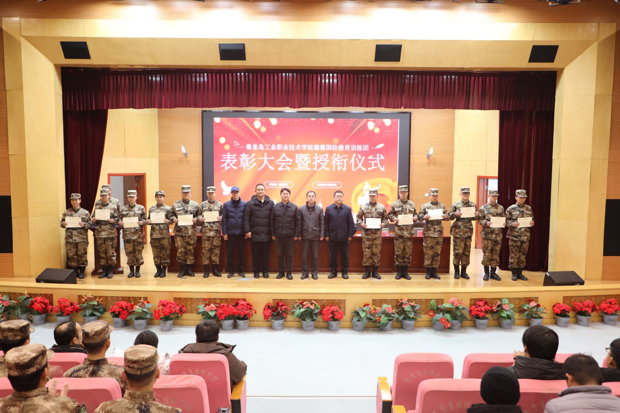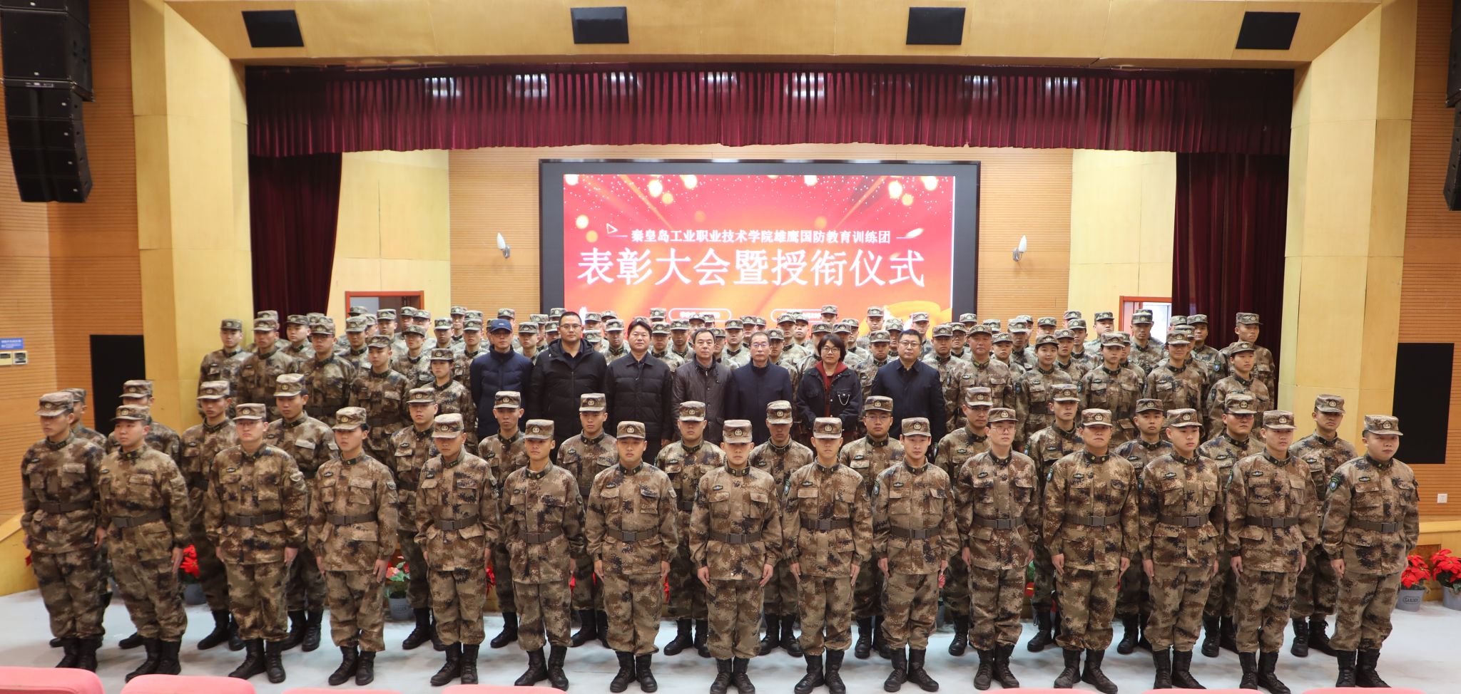 12月23日,学院在图书馆报告厅举行2025年度“雄鹰国防教育训练团”表彰大会暨授衔仪式。王占峰副院长出席大会并讲话,学生处及各系相关负责人、辅导员、雄鹰国防教育训练团全体成员和学生代表参加了大会。