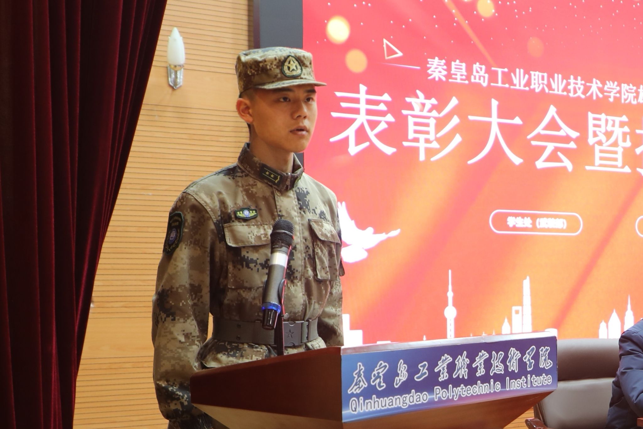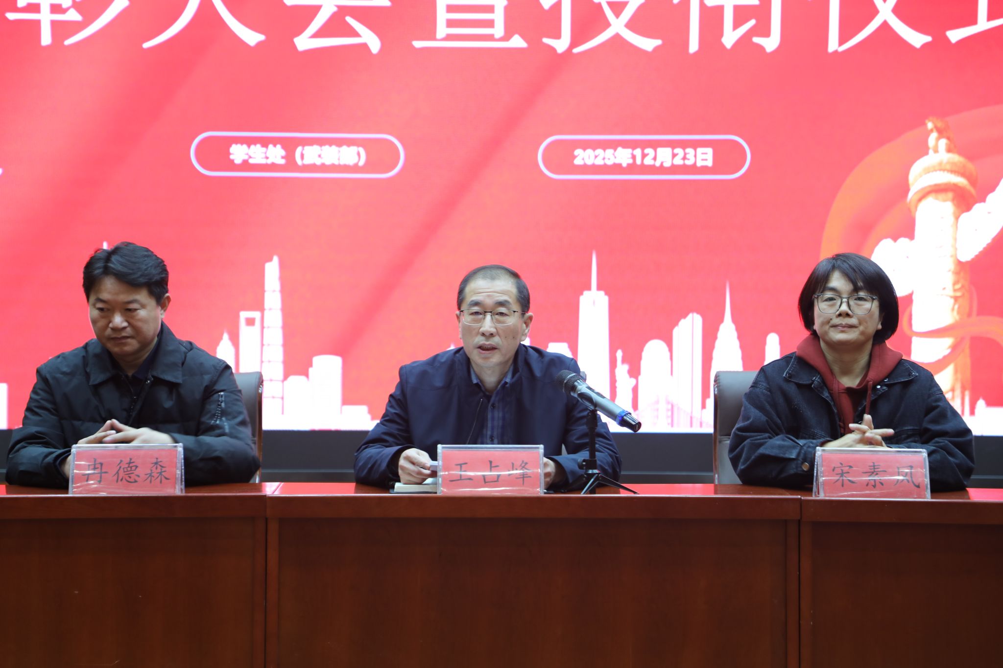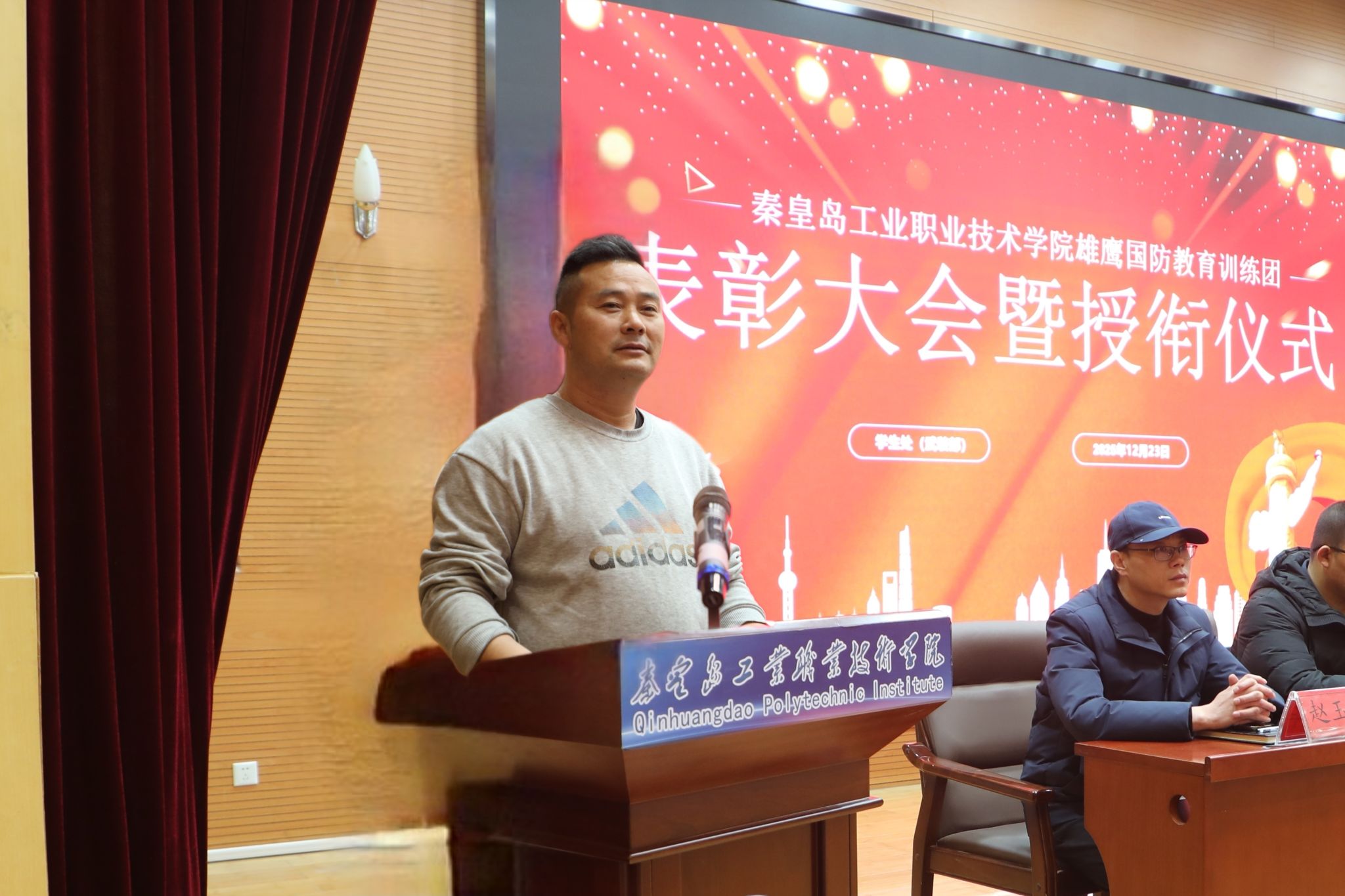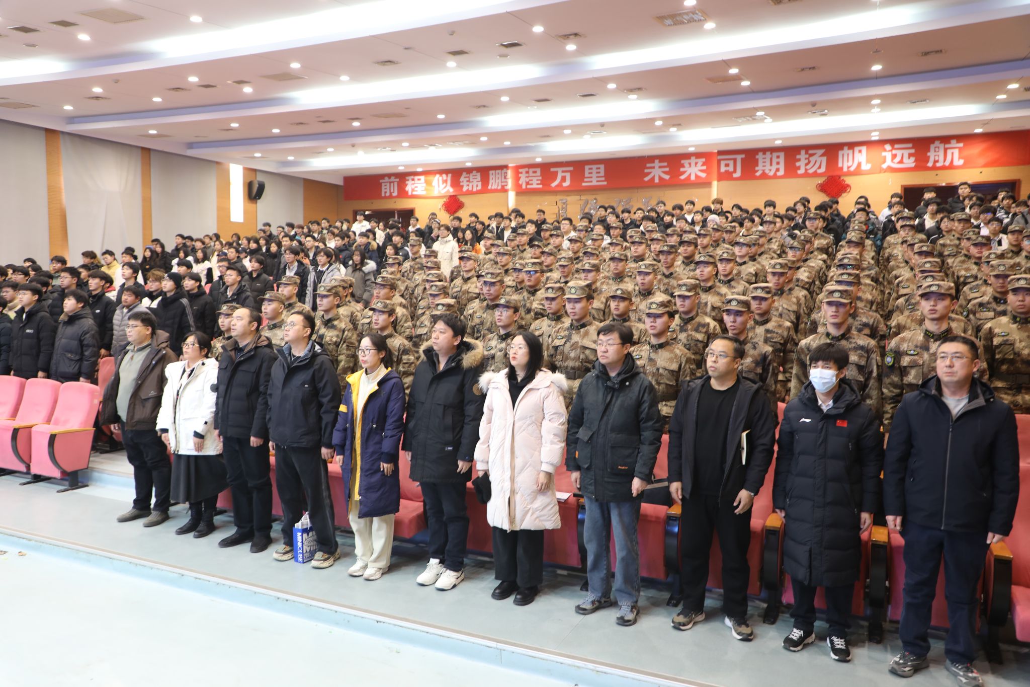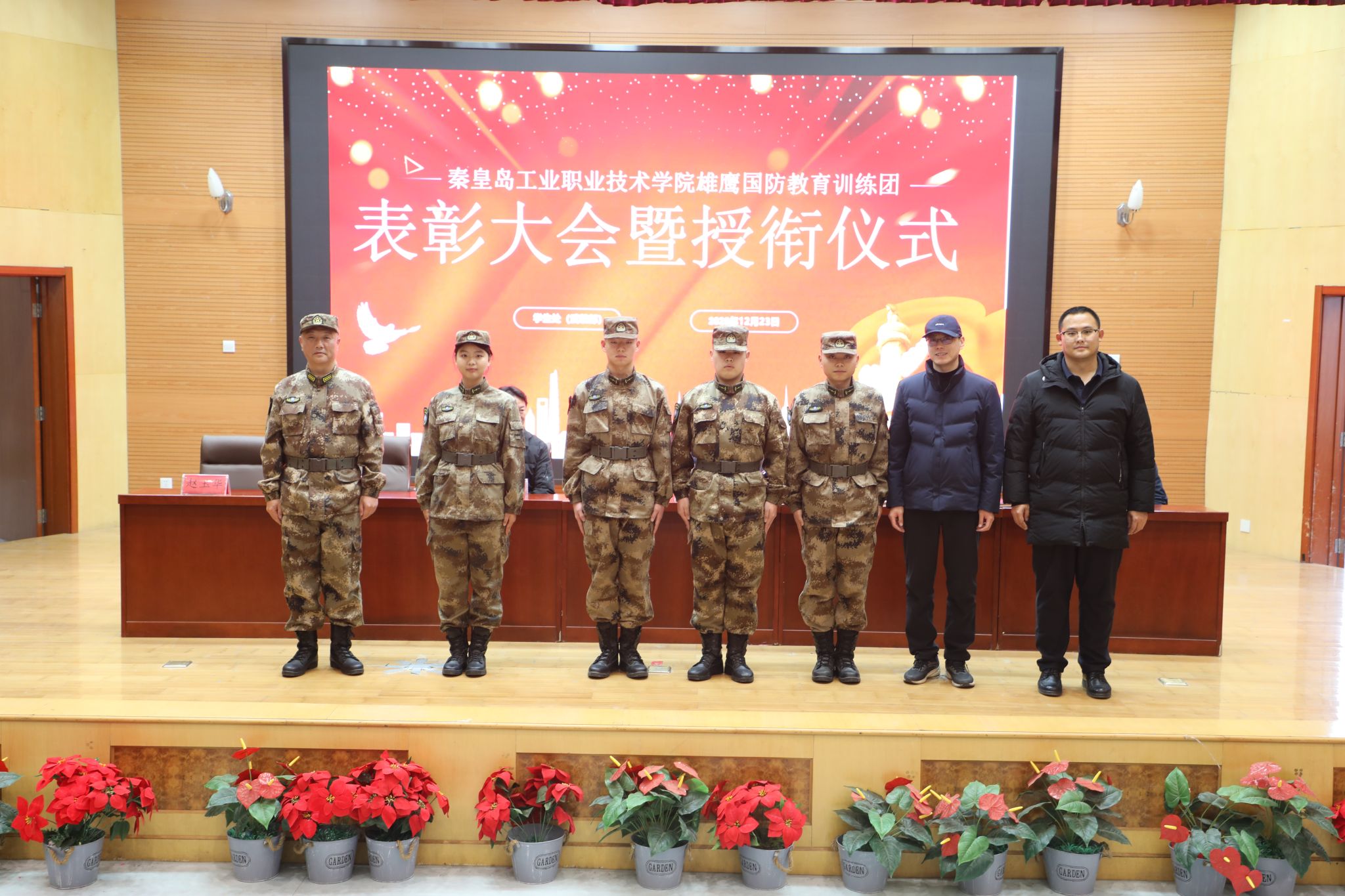 12月23日,学院在图书馆报告厅举行2025年度“雄鹰国防教育训练团”表彰大会暨授衔仪式。王占峰副院长出席大会并讲话,学生处及各系相关负责人、辅导员、雄鹰国防教育训练团全体成员和学生代表参加了大会。