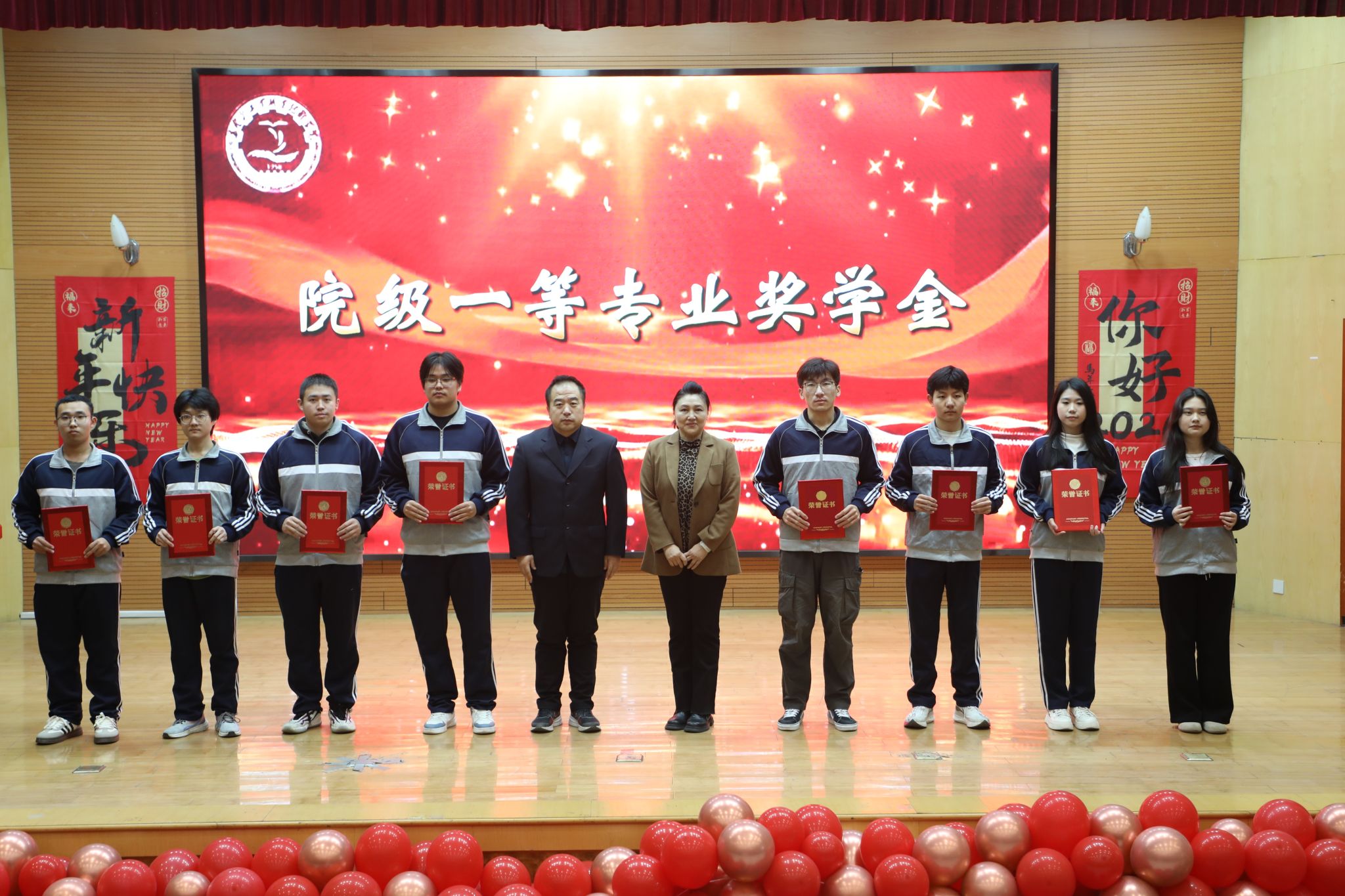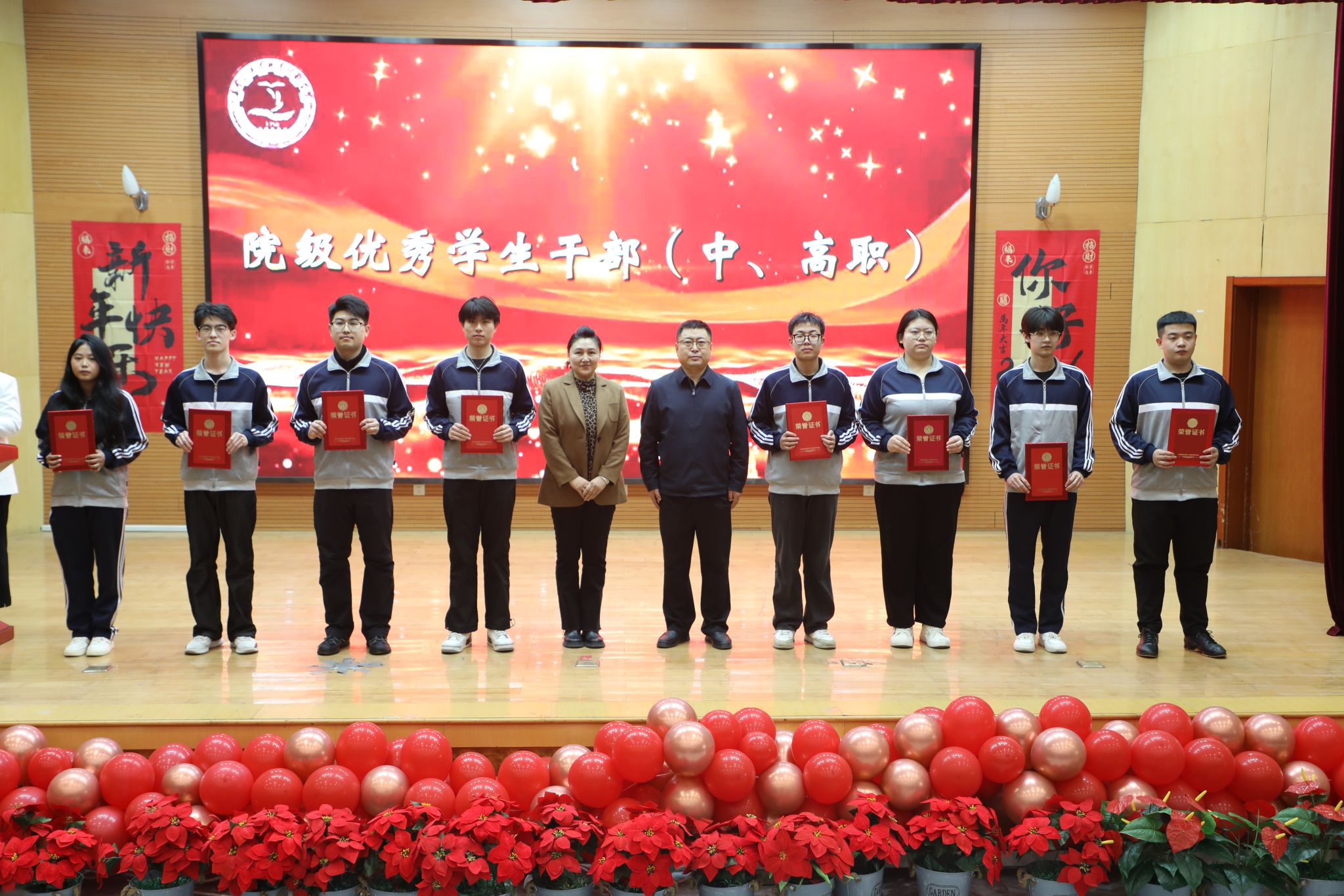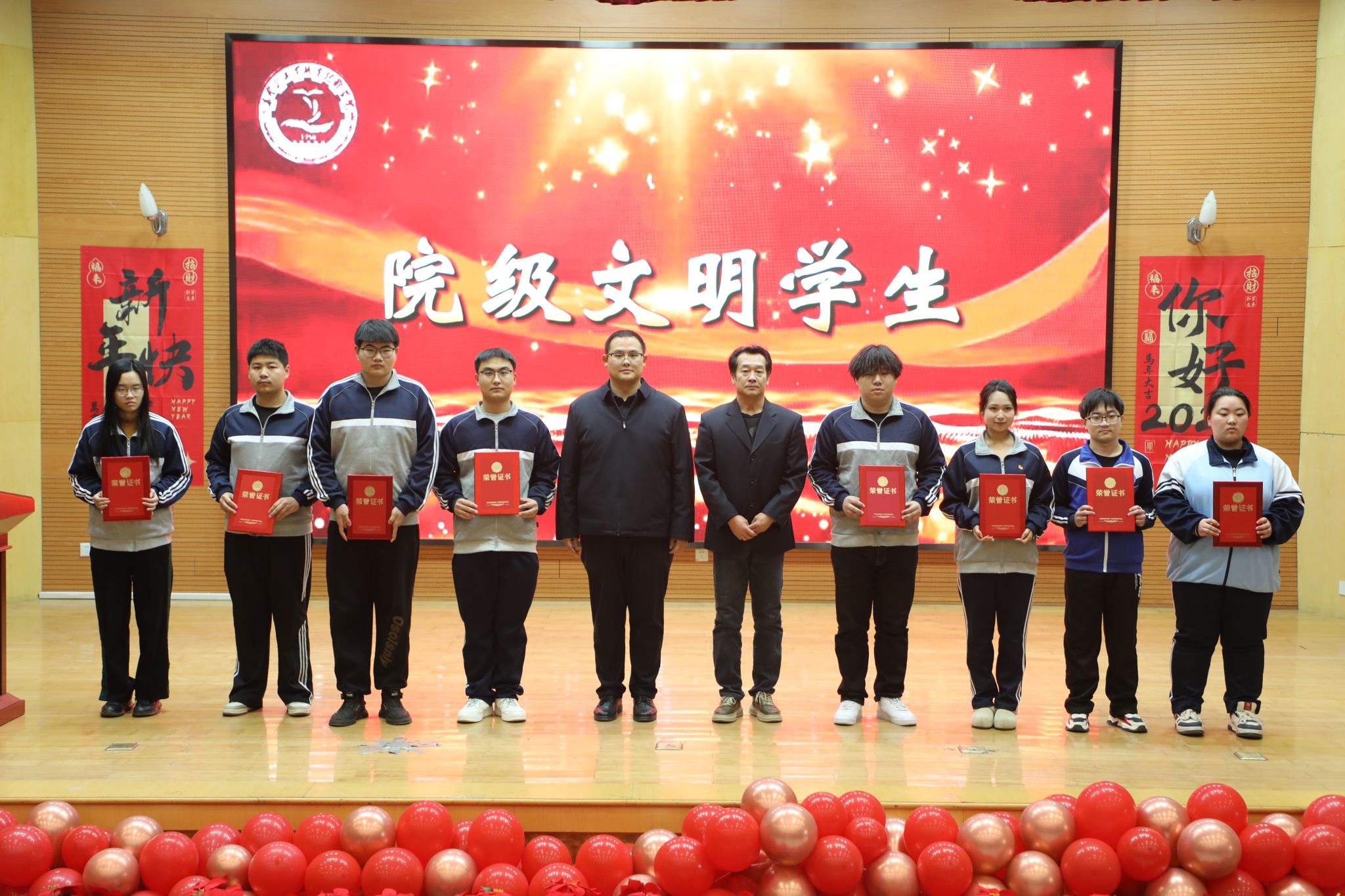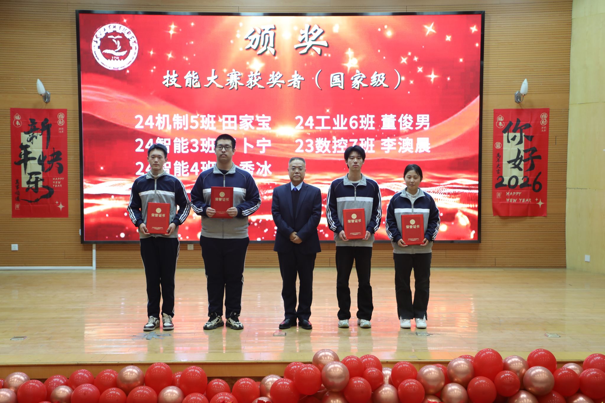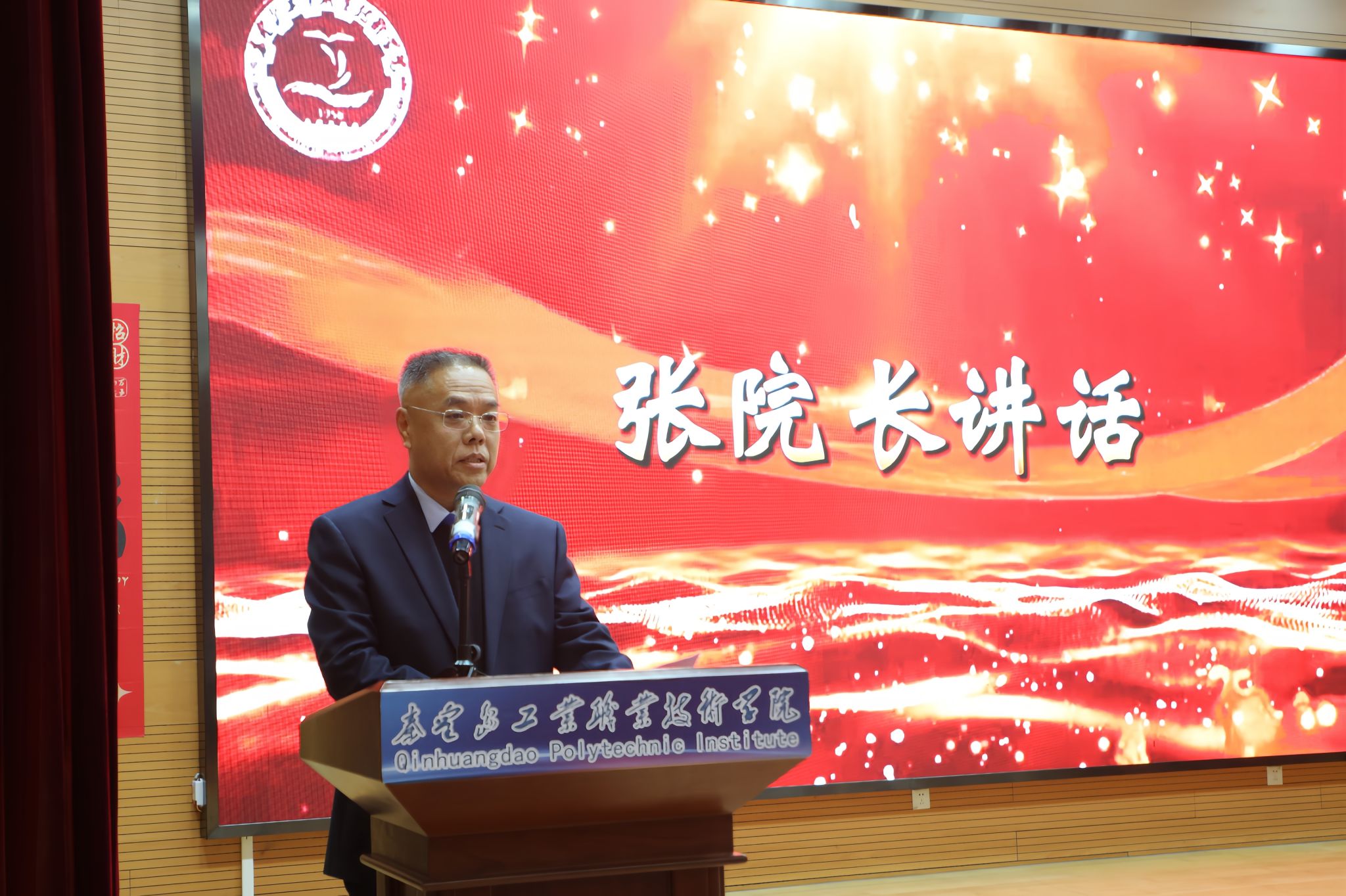 为表彰先进、树立榜样,凝聚奋进力量,1月8日下午,秦皇岛工业职业技术学院在图书馆报告厅举行2025年度优秀学生和先进班集体表彰大会。学院党委副书记、院长张玉强、党委副书记徐明、副院长金辉、纪委书记彭诗勇、副院长王占峰以及相关部门中层干部出席了大会,大会由学生处处长宋素凤主持。