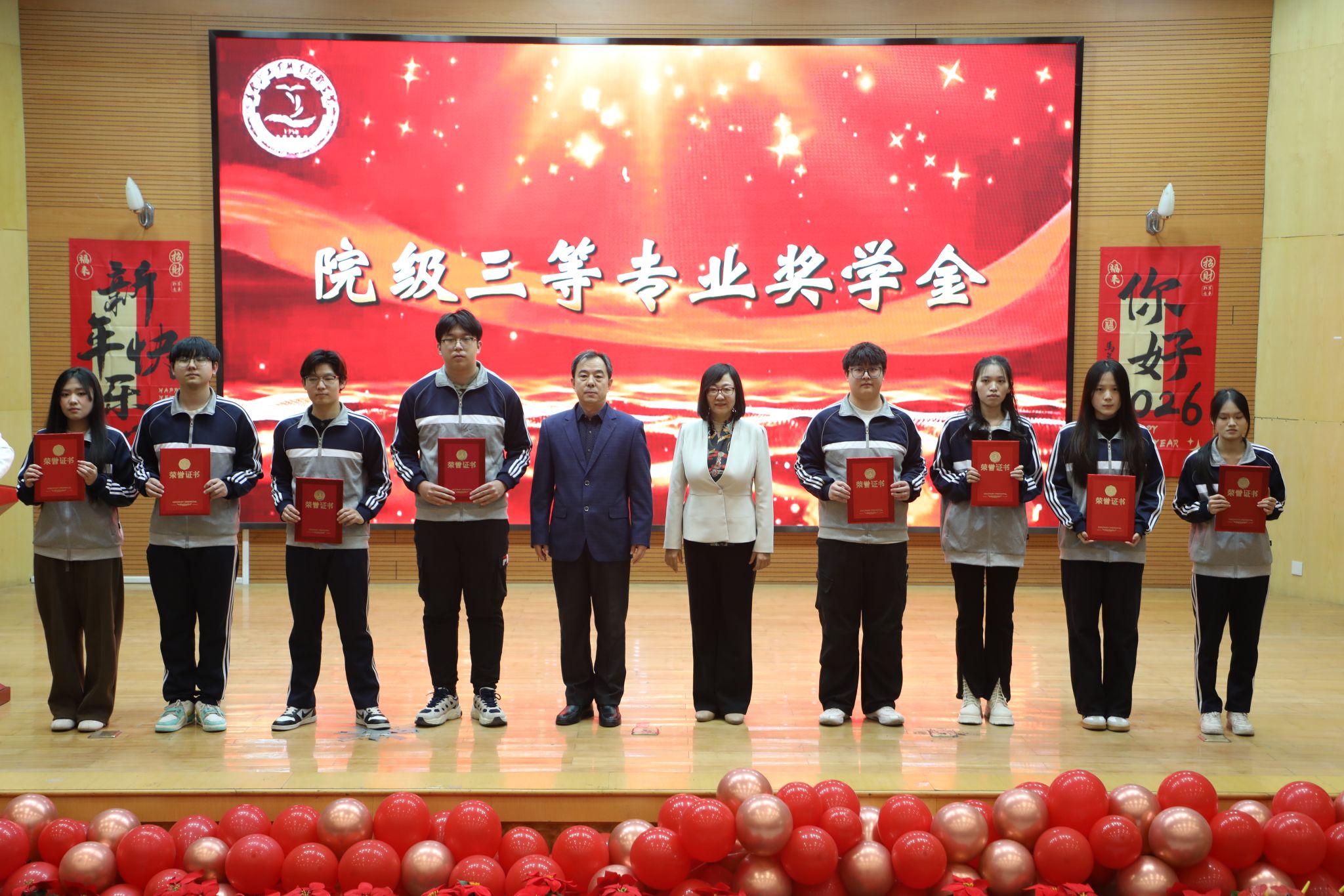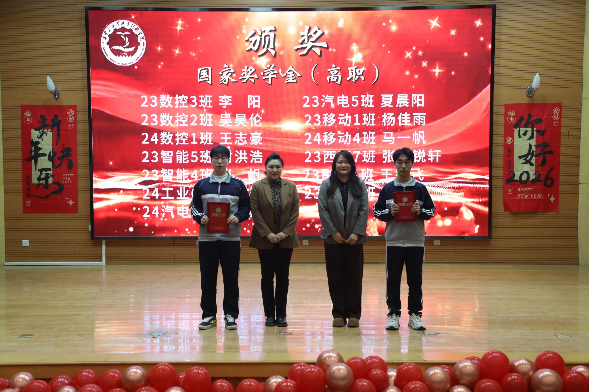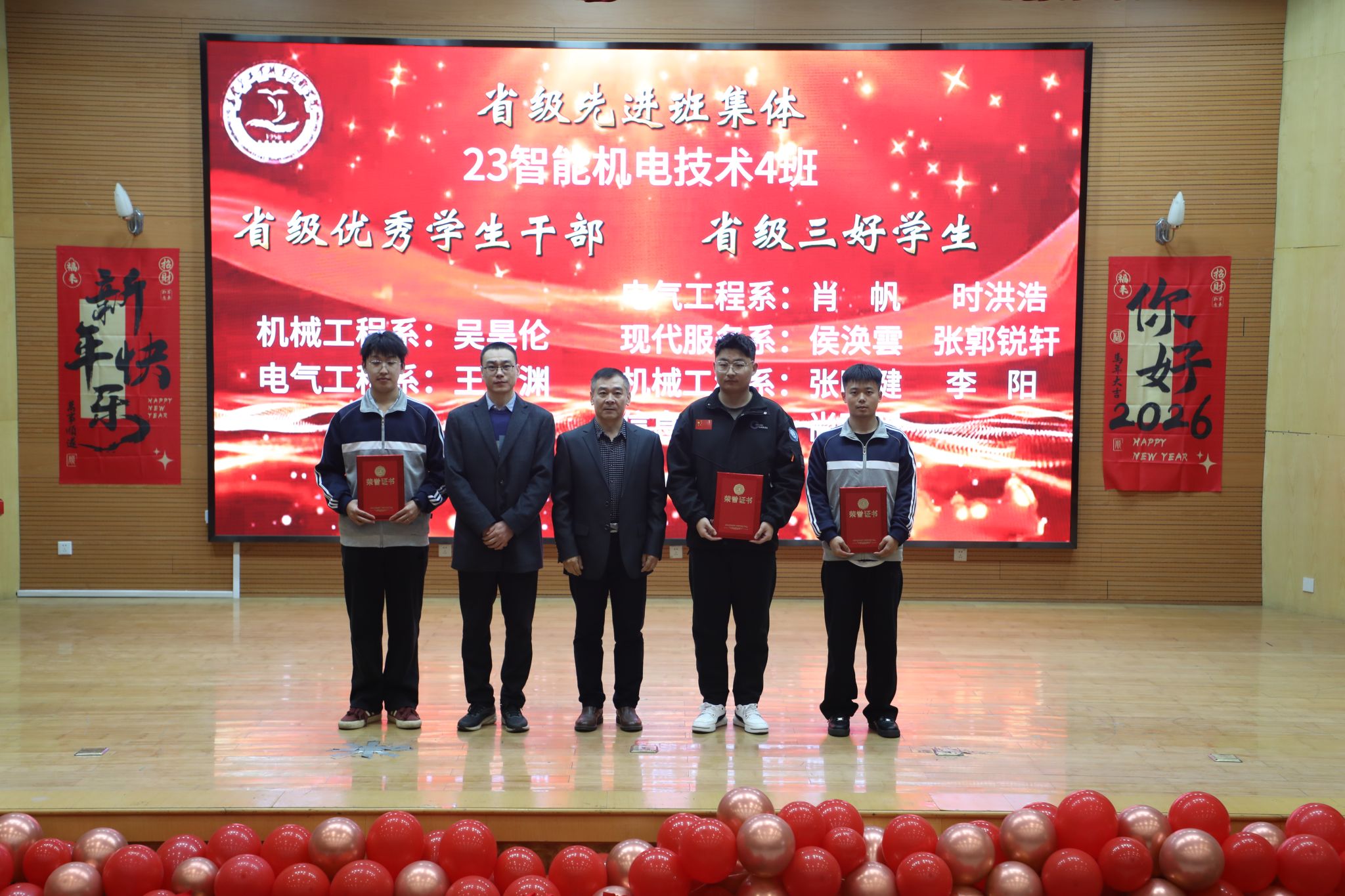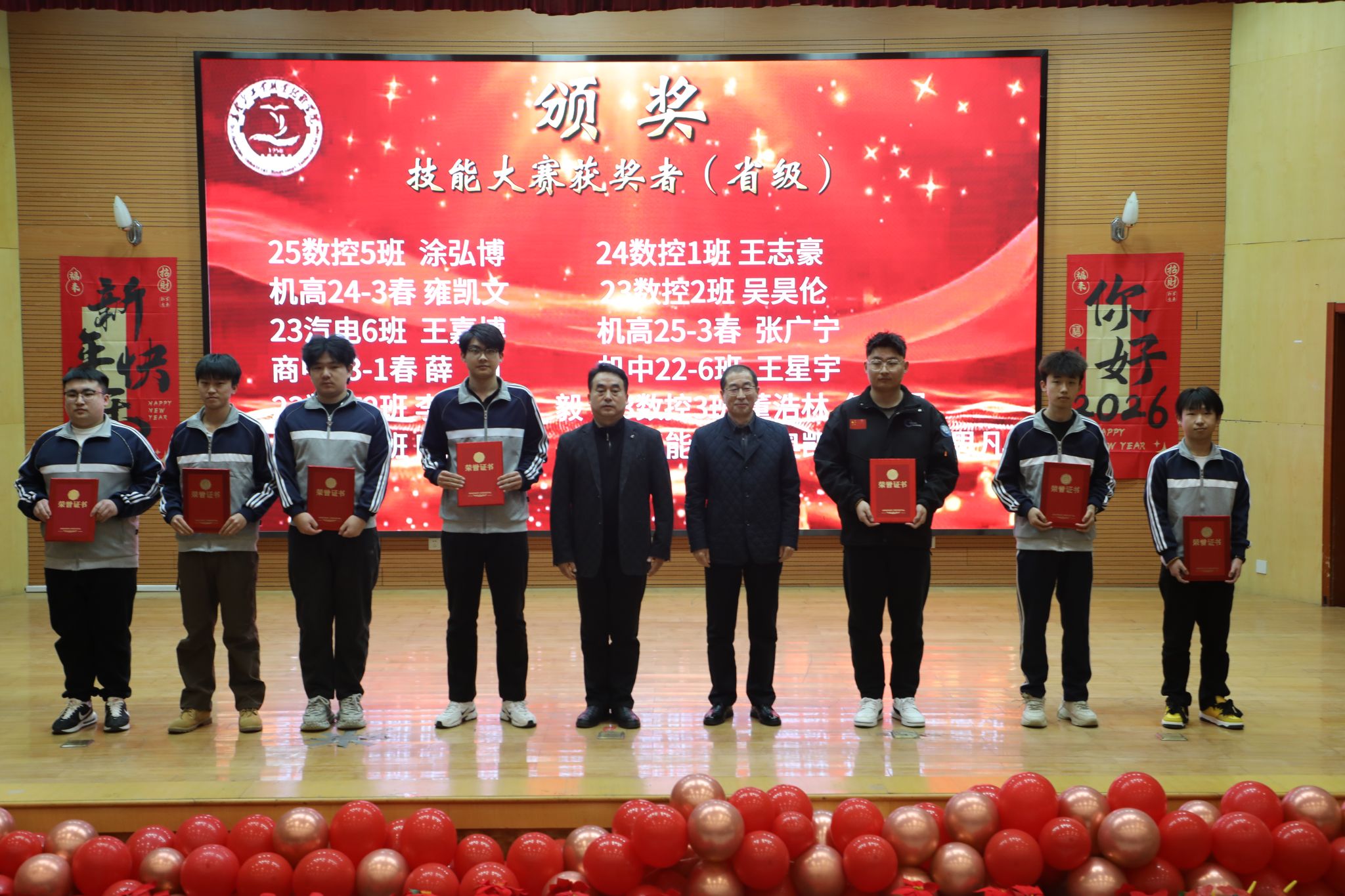 为表彰先进、树立榜样,凝聚奋进力量,1月8日下午,秦皇岛工业职业技术学院在图书馆报告厅举行2025年度优秀学生和先进班集体表彰大会。学院党委副书记、院长张玉强、党委副书记徐明、副院长金辉、纪委书记彭诗勇、副院长王占峰以及相关部门中层干部出席了大会,大会由学生处处长宋素凤主持。