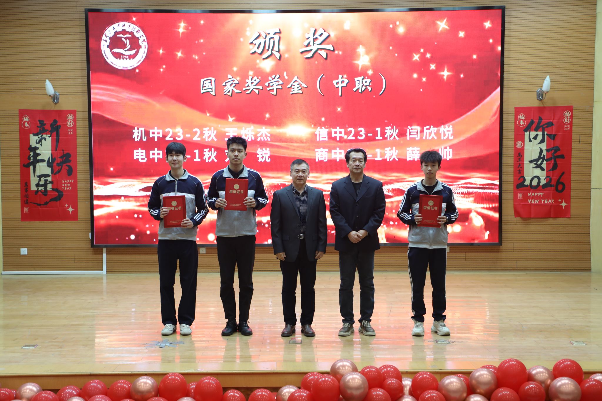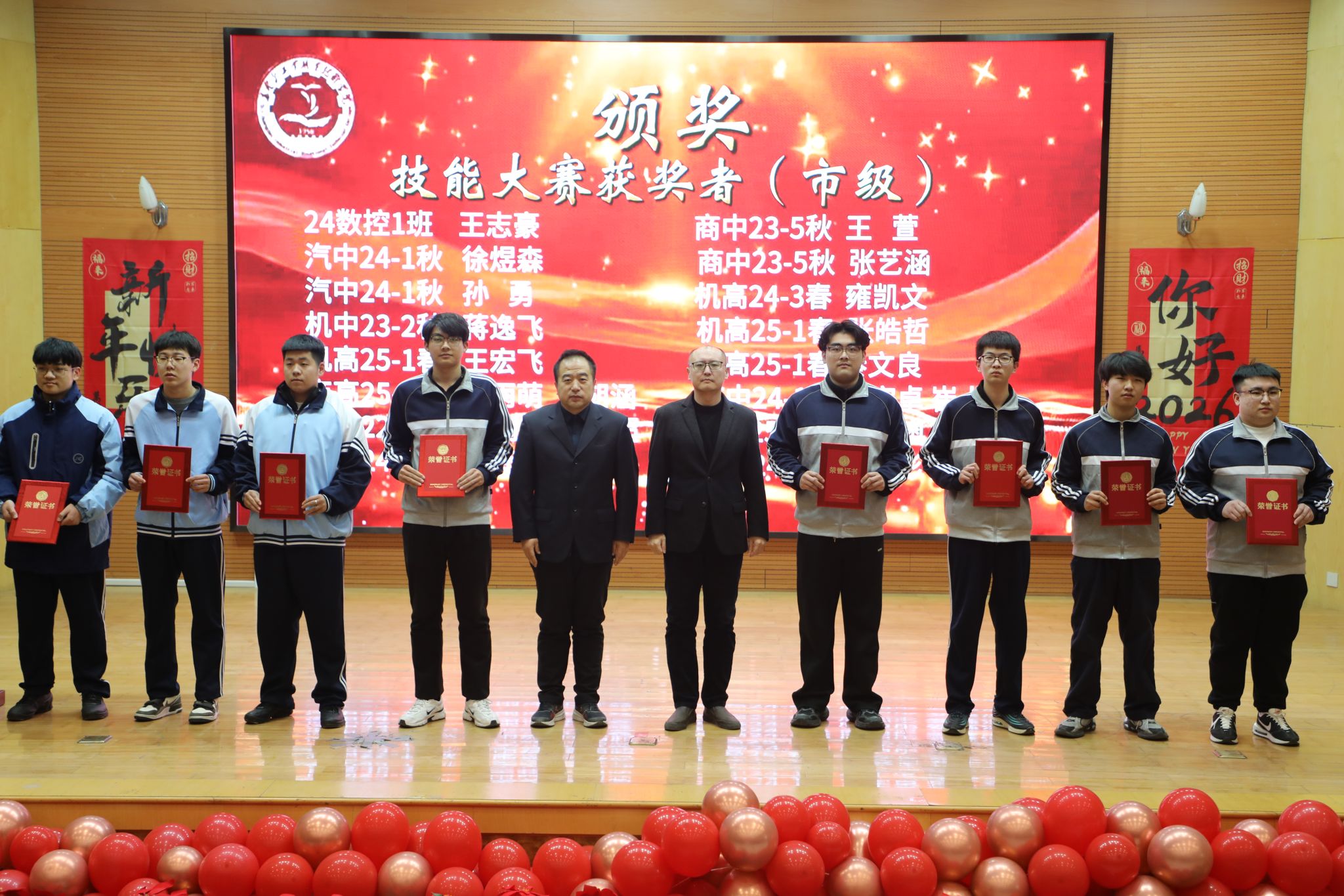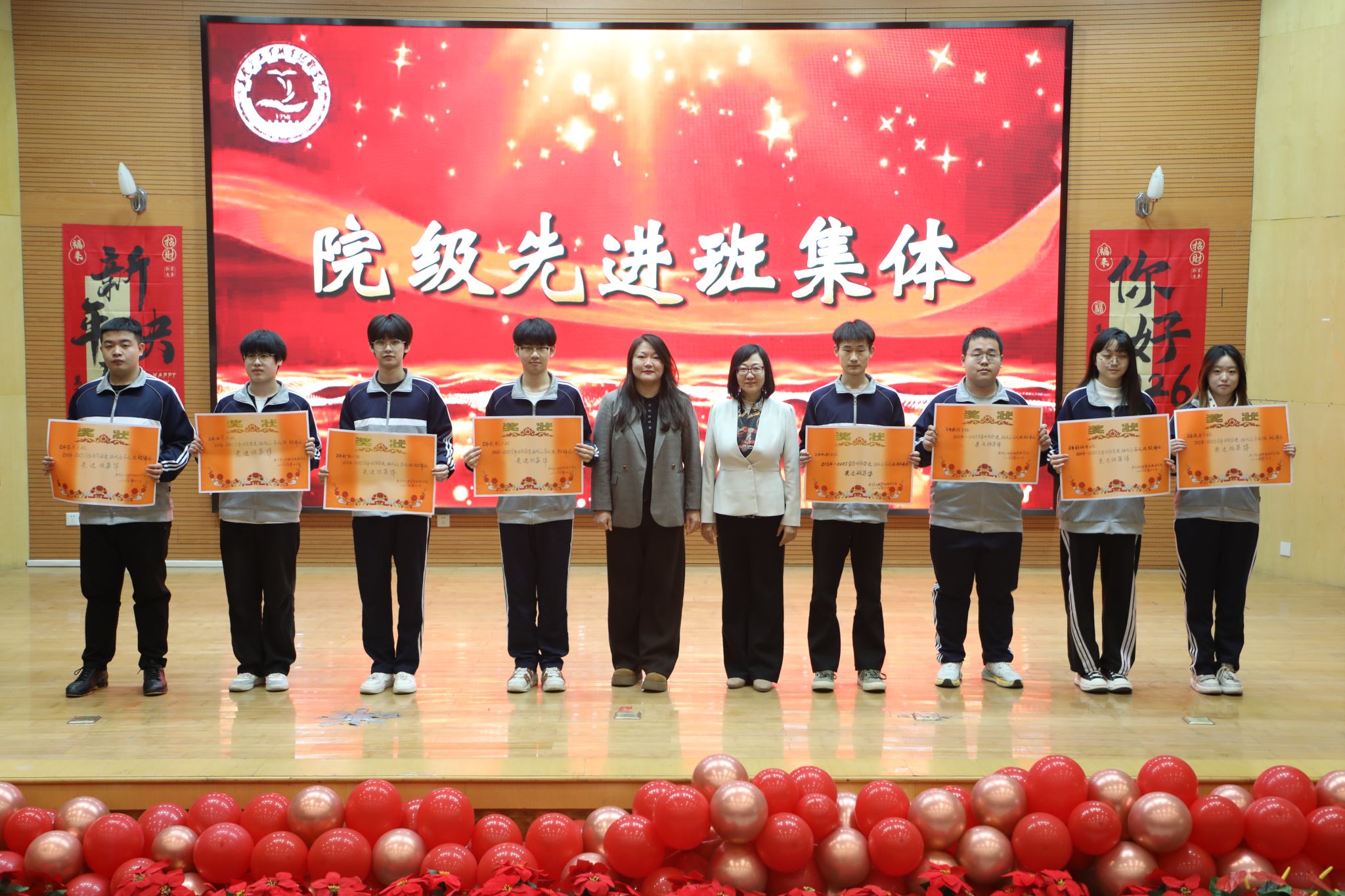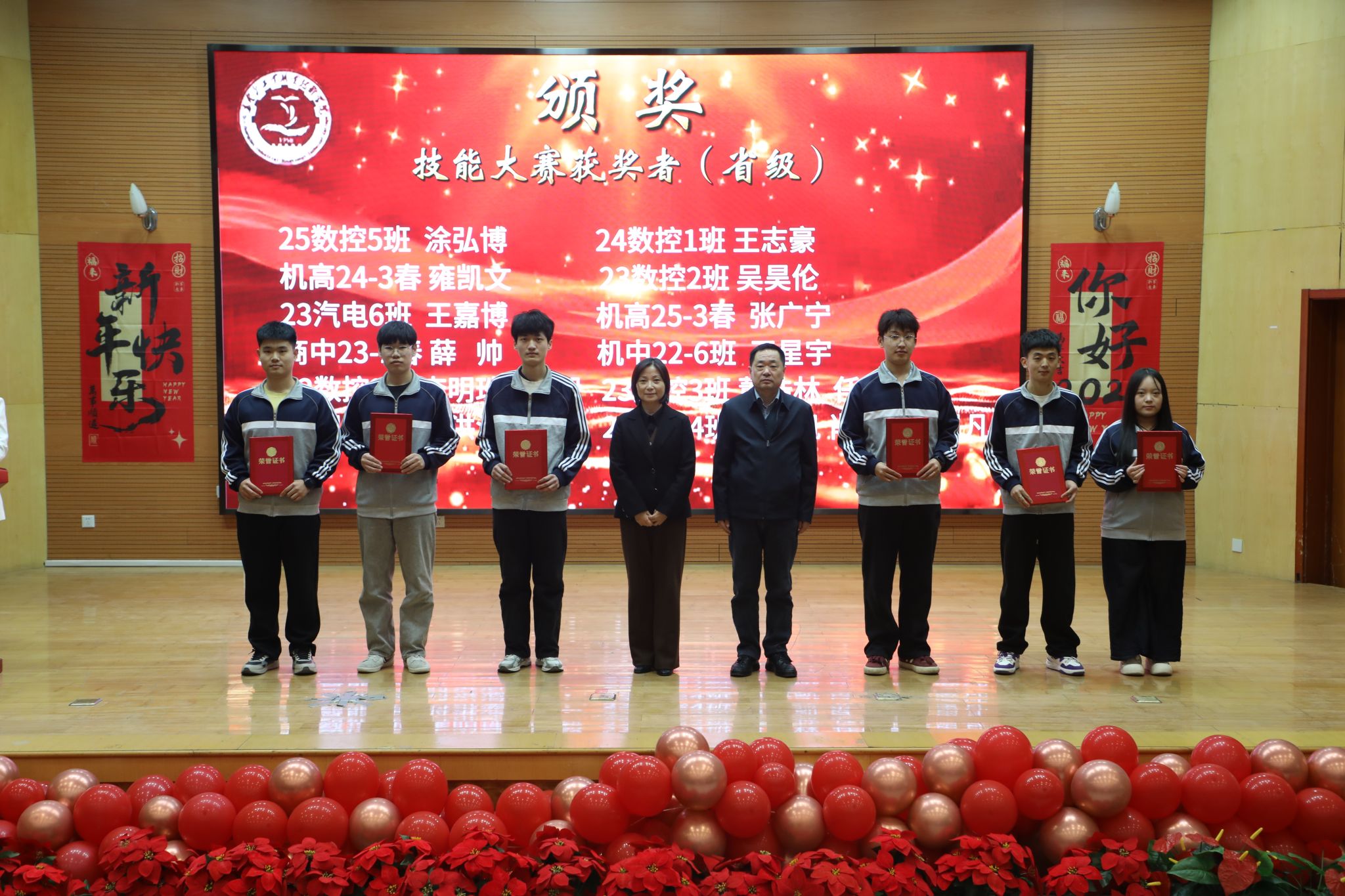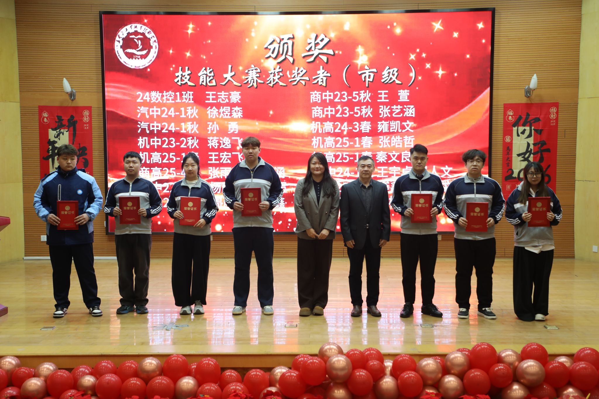 为表彰先进、树立榜样,凝聚奋进力量,1月8日下午,秦皇岛工业职业技术学院在图书馆报告厅举行2025年度优秀学生和先进班集体表彰大会。学院党委副书记、院长张玉强、党委副书记徐明、副院长金辉、纪委书记彭诗勇、副院长王占峰以及相关部门中层干部出席了大会,大会由学生处处长宋素凤主持。