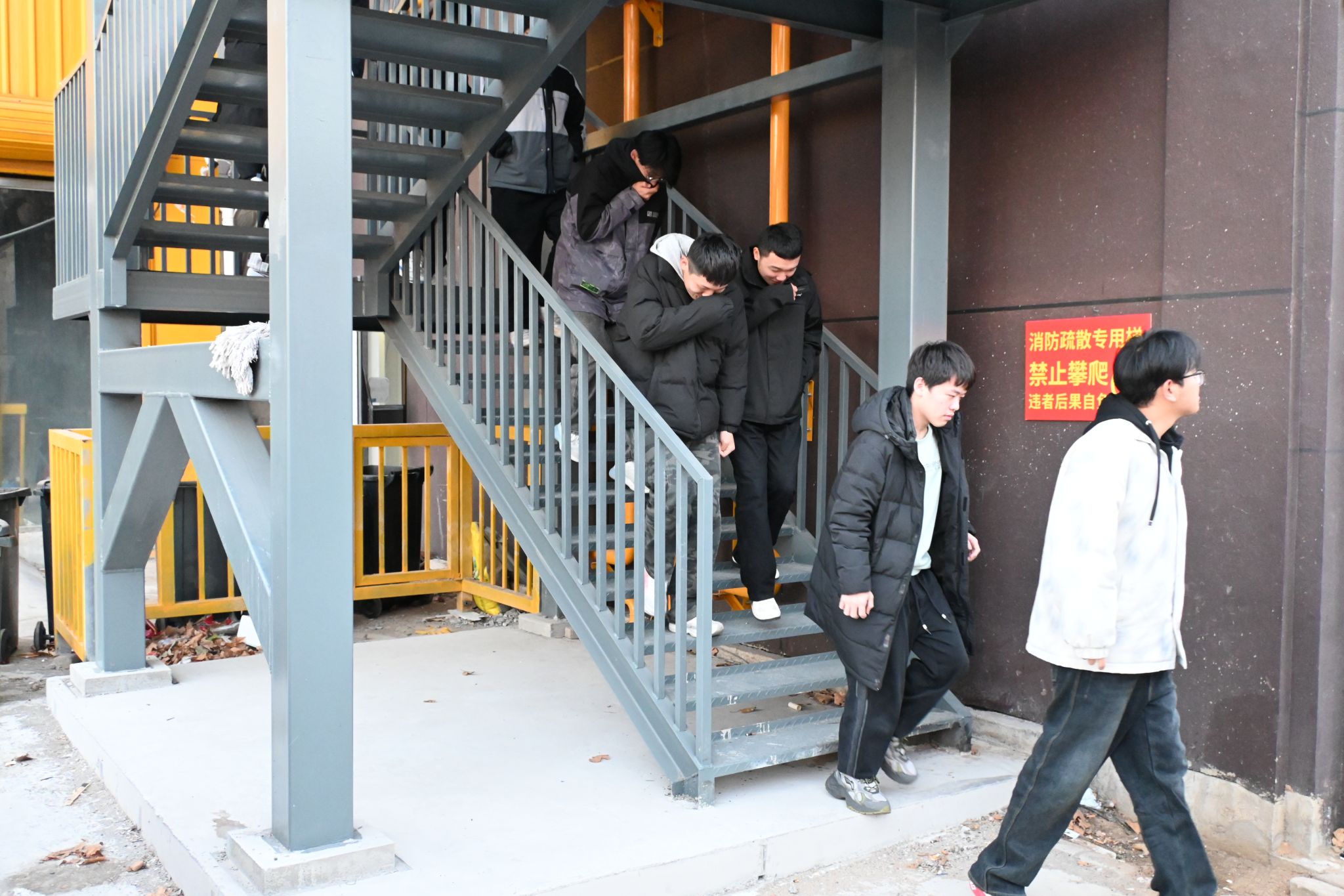为切实强化校园消防安全管理,提高学生应急避险与自救互救能力,近期,我院后勤保卫处组织开展冬季消防疏散演练,7号公寓楼全体学生参与演练。