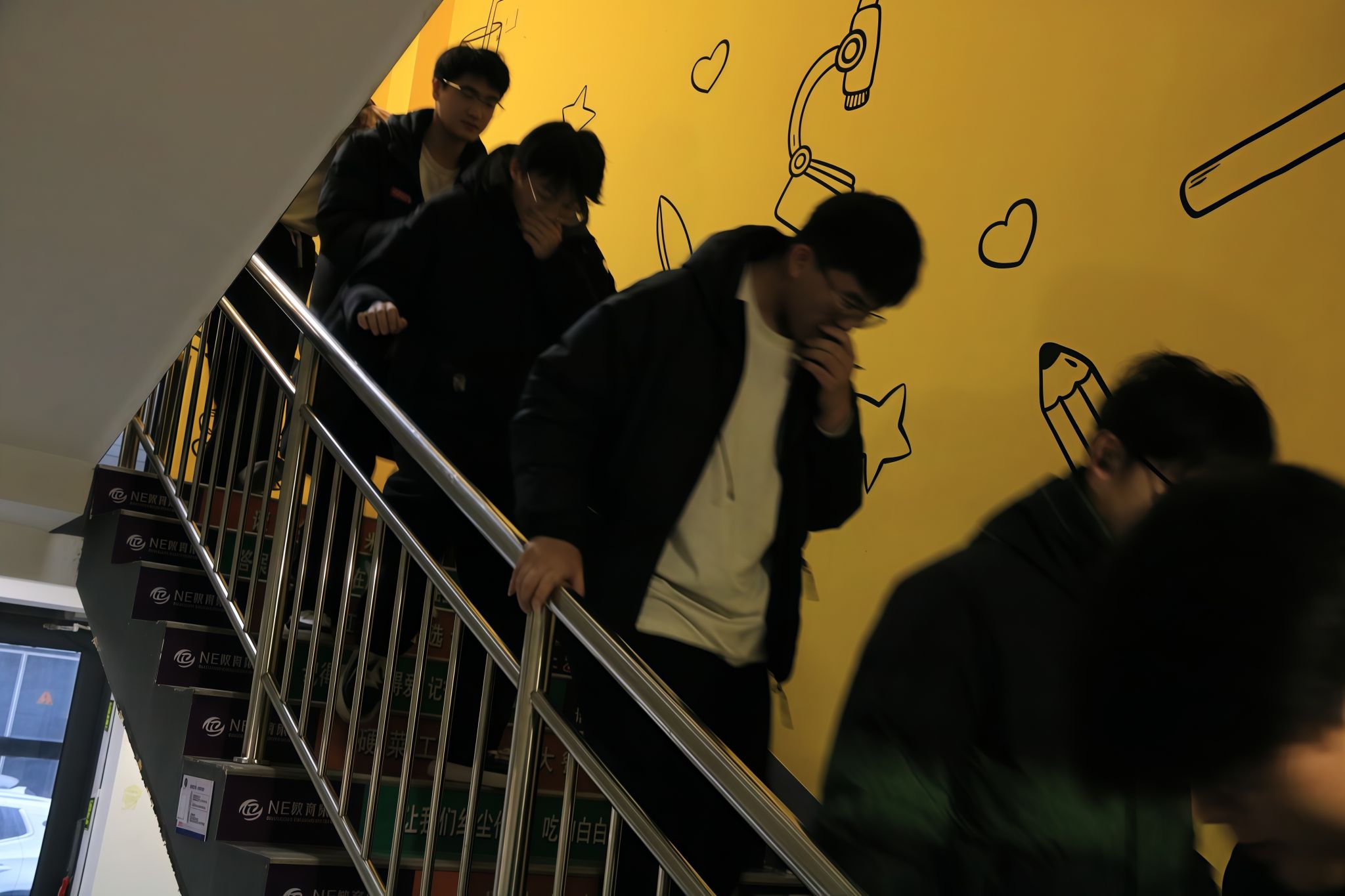 随着消防警报声响起,演练正式开始。各楼层引导员迅速就位,沉着引导学生弯腰捂鼻、低姿前行,按照预定路线快速有序撤离。全体学生反应迅速、配合默契,全程无拥挤、无慌乱,悉数安全抵达指定集合区域,工作人员随即清点人数,确认全员到齐。