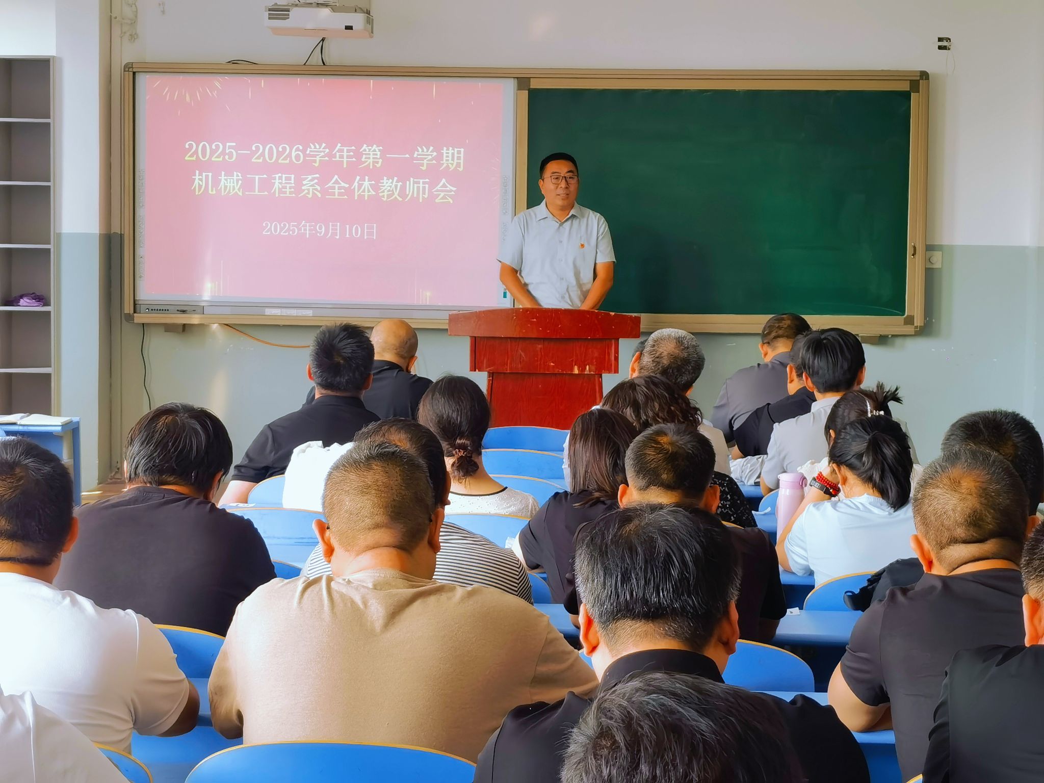 新学期伊始,为全面落实学院2025年教师节表彰大会的精神,确保秋季开学工作顺利进行,机械工程系于9月10日召开了全体教职工大会。此次会议集中学习了学院党委副书记、院长张玉强在教师节上的讲话精神,并部署了重点任务,为新学期各项工作的顺利开展奠定了坚实基础。