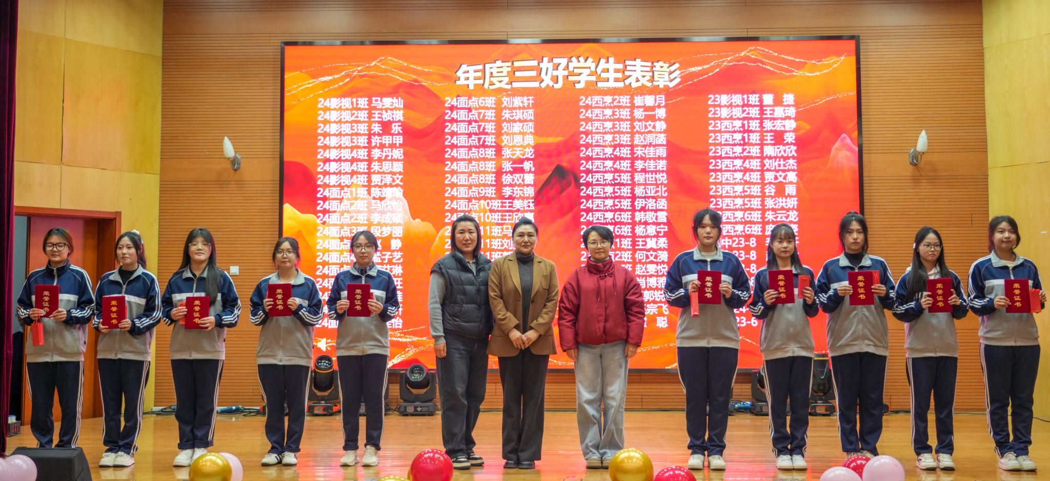 活动现场对三好学生代表、优秀学生会骨干、各班级优秀班干及优秀团干代表进行表彰,更对在各类大赛中斩获佳绩的学子予以嘉奖。过去一年,现代服务系捷报频传:西餐烹饪学子摘得河北省职业技能大赛世赛精选项目铜牌,影视制作学子在市赛中揽获短视频制作一二等奖,乡村艺术创作省赛喜获殊荣,工职杯篮球赛实现年度冠军零的突破,校级K歌大赛包揽冠亚季军,读书分享大赛亦折桂而归……他们以奋斗为笔,书写了青春最动人的答卷。