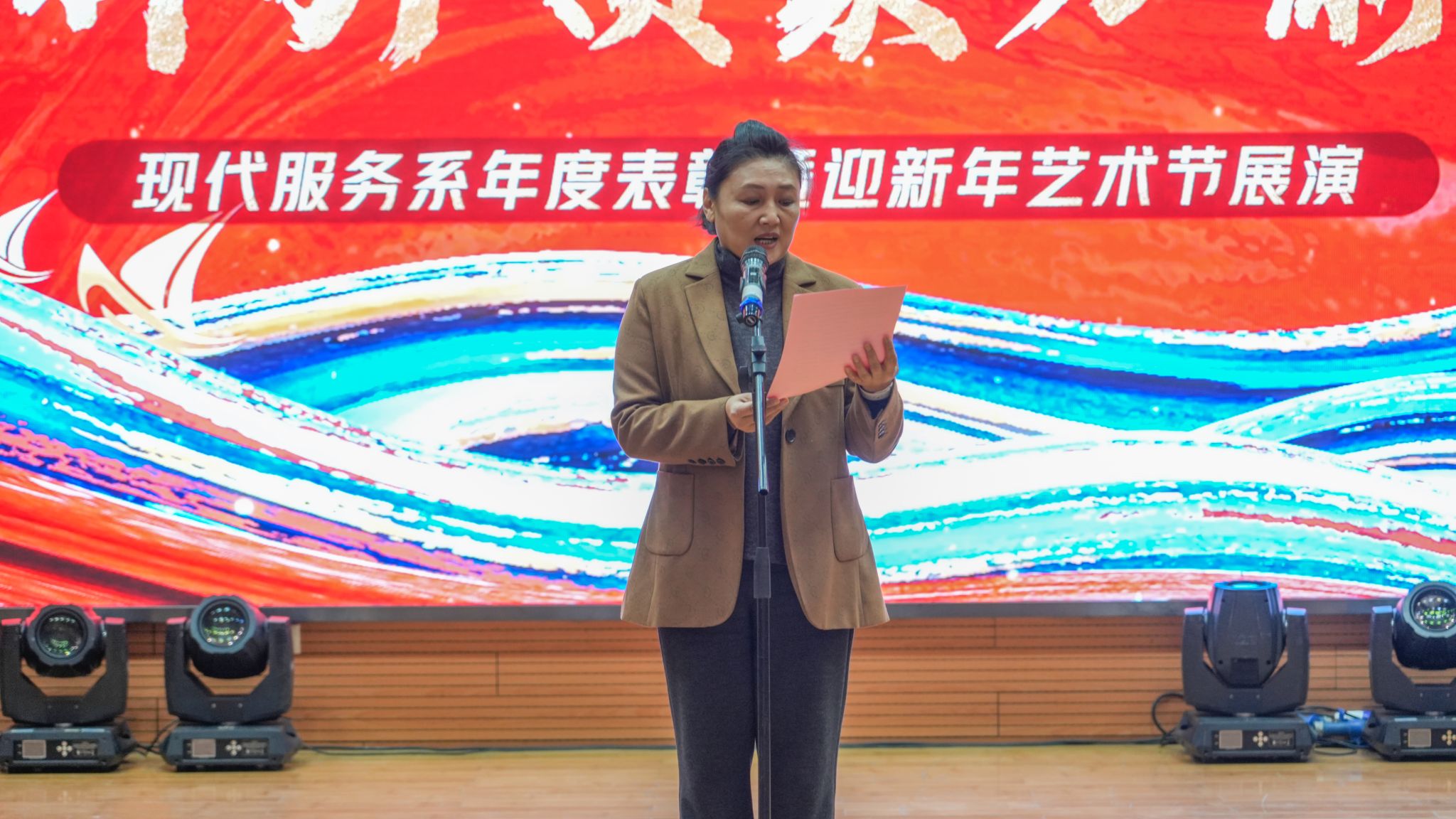 展演伊始,现代服务系主任陈津红致辞。她细数年度耕耘硕果,向获奖学子致以诚挚祝贺,寄语全体师生以榜样为镜、以奋斗为舟,在新征程上续写青春华章。言辞间的殷切期许,如春风化雨浸润人心。