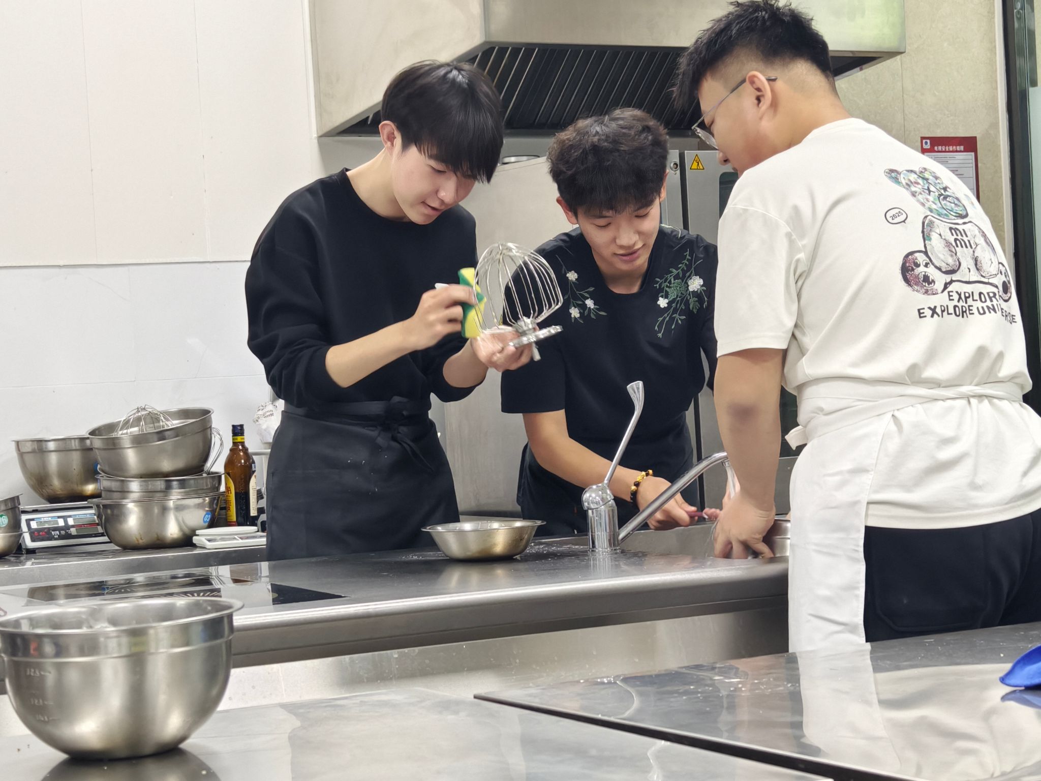 这场嘉年华可不只是“烤点心”那么简单!现代服务系学子分享烘焙技能,机械工程系学子带来高效协作思路,跨界组队让“技能互学、文化交融”显现实效。4个小时的快乐时光里,大家不仅学会了专业烘焙技巧,更收获了跨系友谊。活动最后,两系学子共同打扫实训室、分享亲手制作的点心,还约定了下次到机械工程系的交流计划,形成了“对外交流拓视野,对内庆节聚人心”的暖心闭环~
