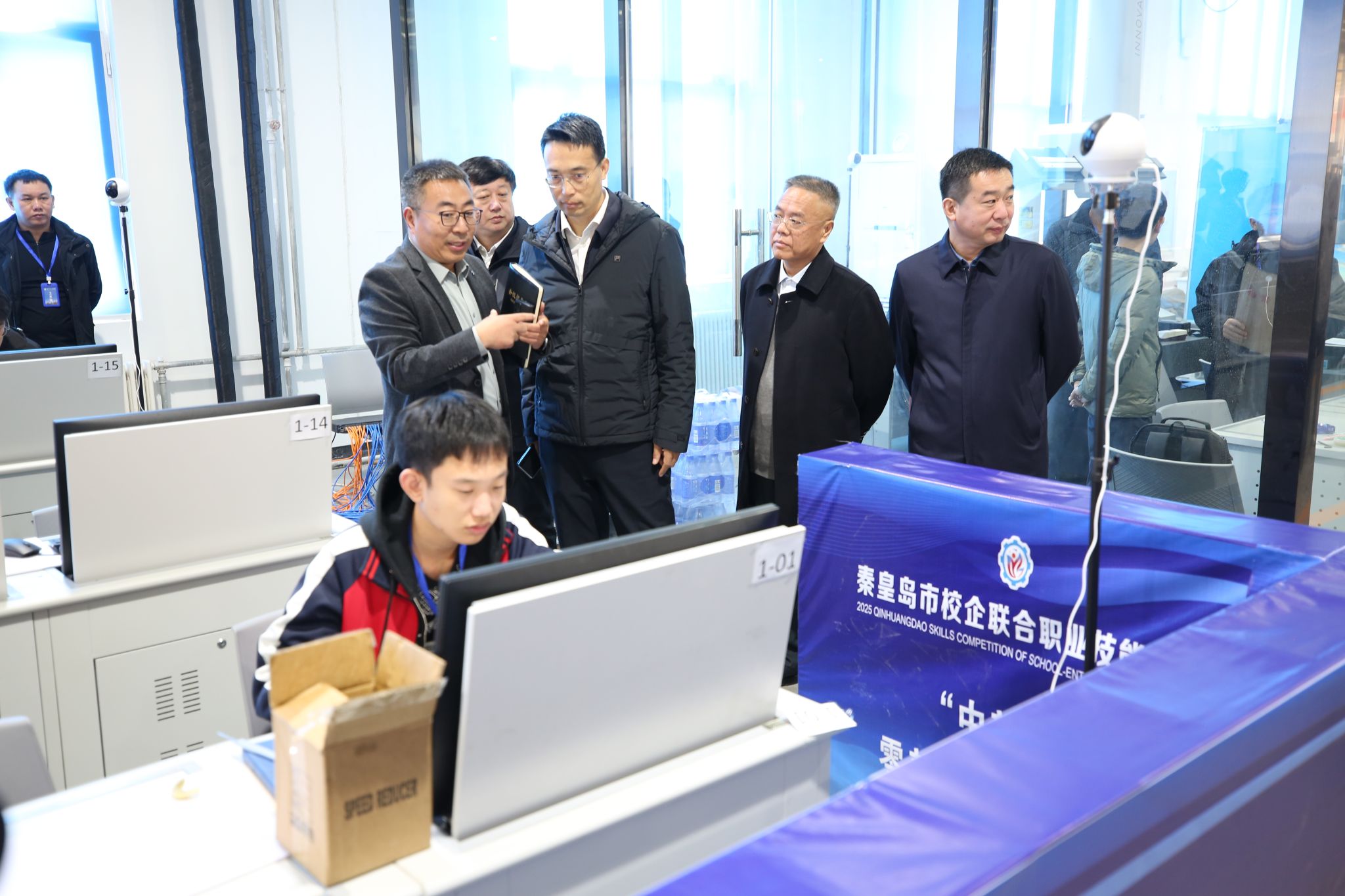秦皇岛市副市长李国强在市委教育工委书记、教育局局长肖凤利和市人社局党组书记、局长刘松涛的陪同下,莅临赛场进行指导和调研,对我院赛场布置和竞赛组织情况给予高度评价。